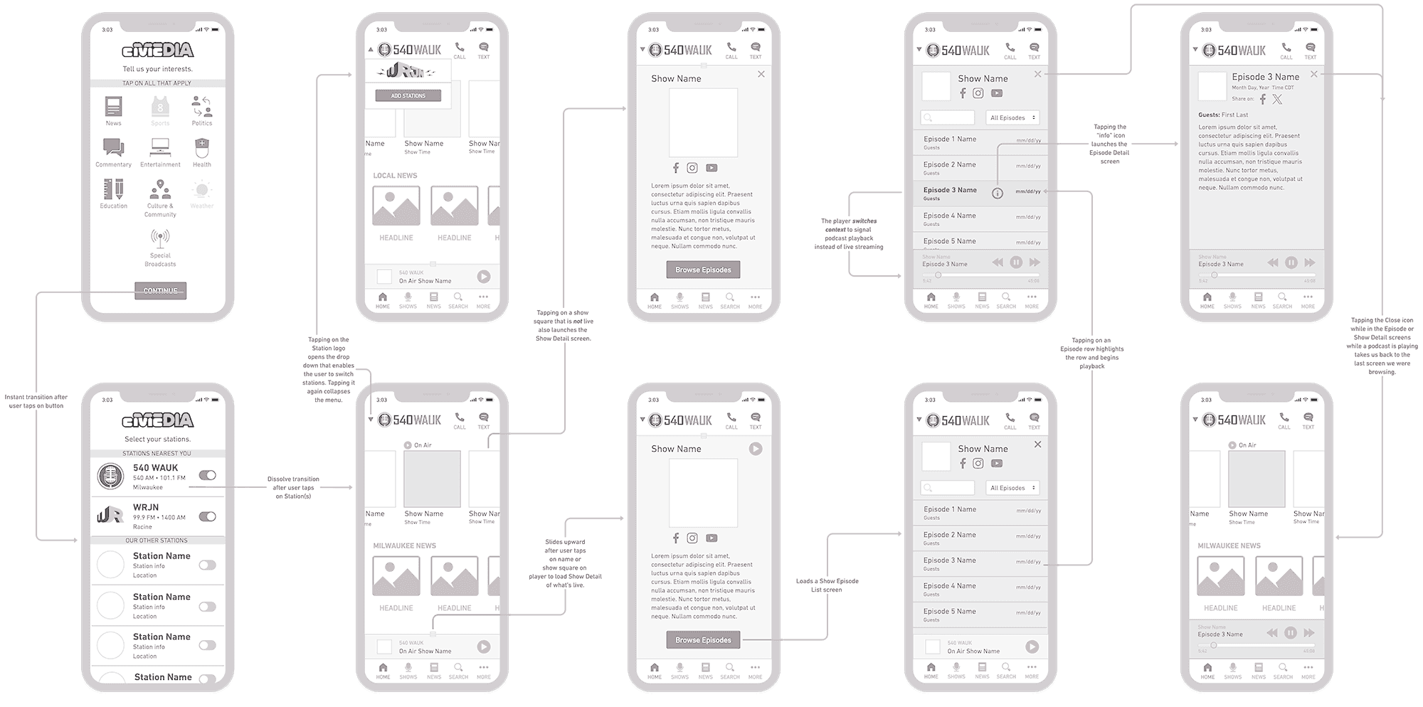 Took the project from 0-to-1 as a lone designer during a time when the network had very limited resources available for creating a mobile app. Through my leadership, Civic Media now offers its users a way to stay connected to its radio content.